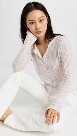 Budget β€οΈ 525 Cashmere Pointelle Henley Pullover Light Heather Grey π