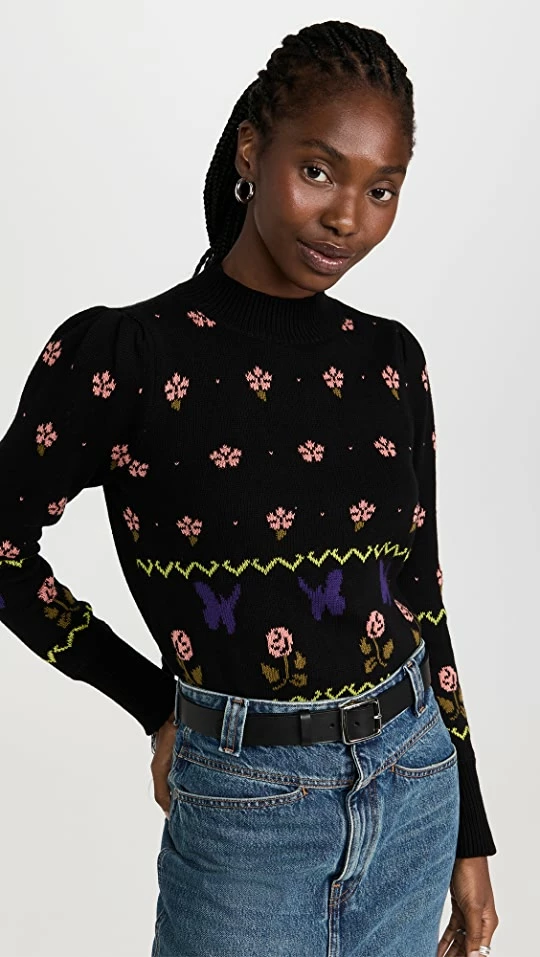 Budget π 525 Cotton Floral Puff Sleeve Pullover Black Multi π₯°