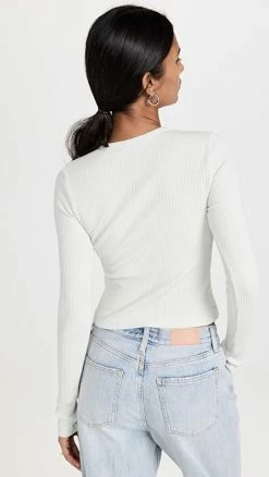 Budget β€οΈ AGOLDE Alma Shrunken Crew Neck Tee : Rib With Extended Sleeves Powder β