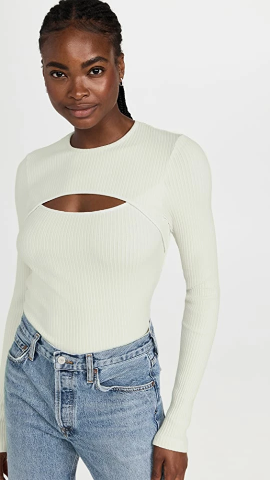 This AGOLDE top brings an of-the-moment look to a classic ribbed knit long sleeve with a layered design and front cutout.
