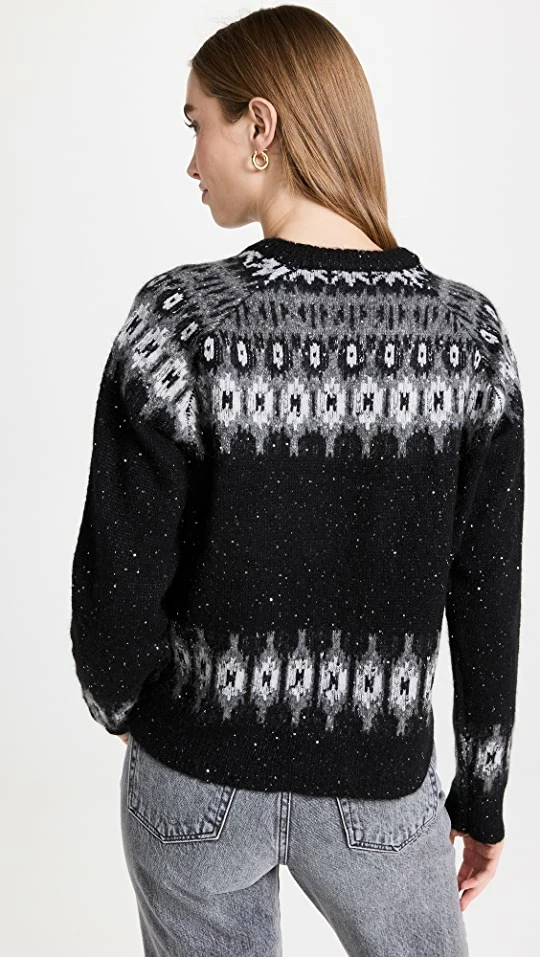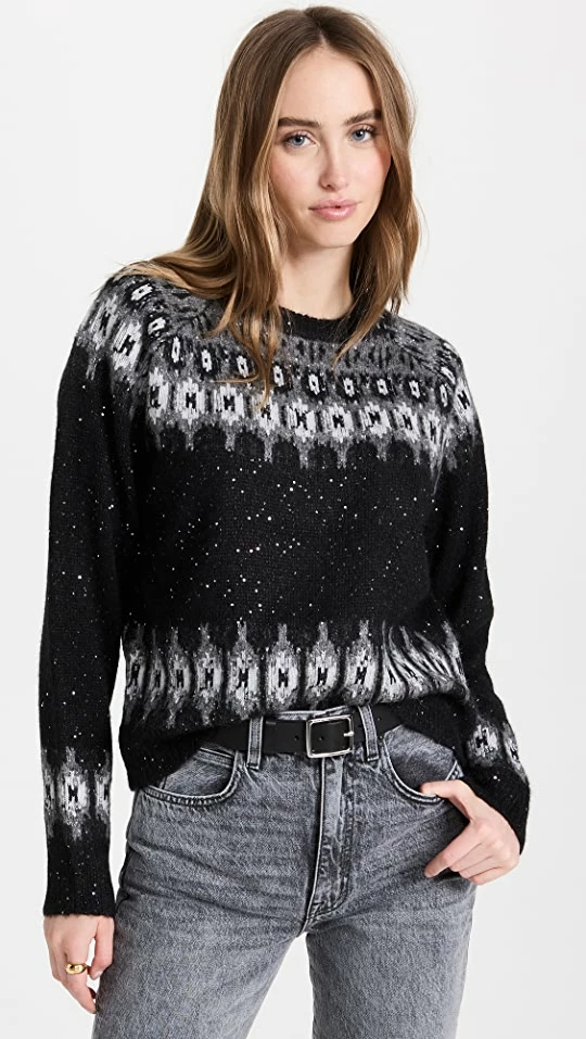 Promo π ATM Anthony Thomas Melillo Wool Blend Sequin Fair Isle Crew Neck Sweater Black Fairisle π€©