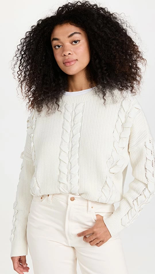 Deals π Club Monaco Woven Detail Sweater Blanc De Blanc π