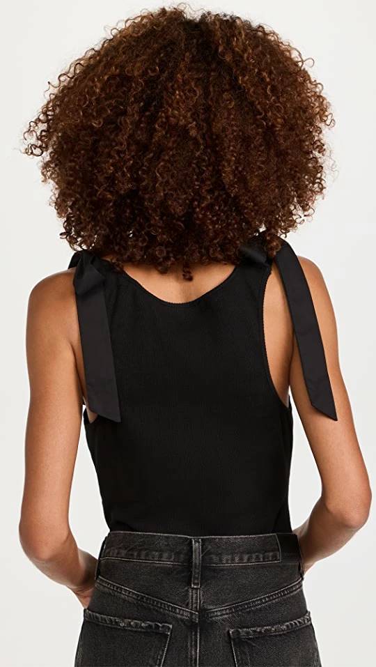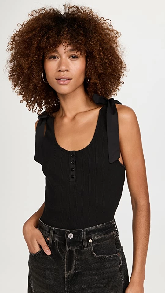 Flash Sale π English Factory Mixed Media Bow Tie Ribbed Henley Tank Black π