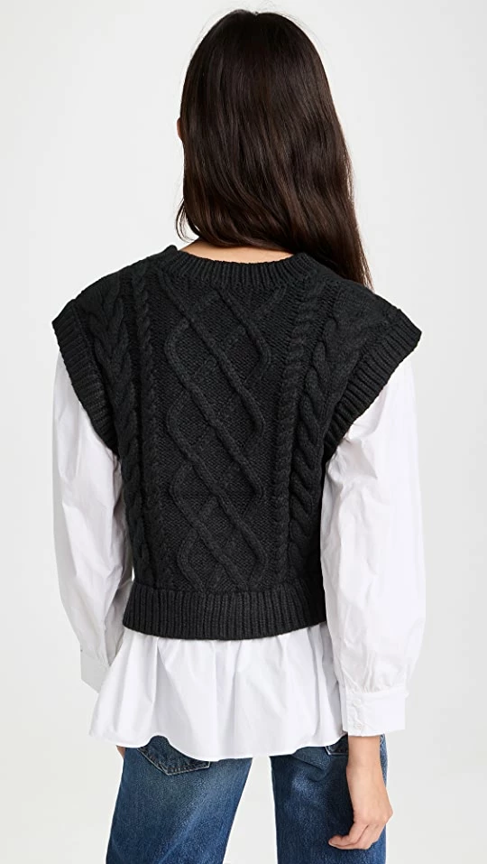 Best Sale ⭐ English Factory Mixed Media Cable Detail Sweater Black/White ⭐
