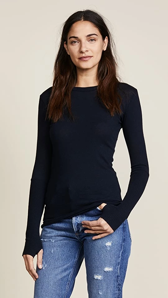 Best Sale π Enza Costa Cuffed Crew Neck Top Cadet β€οΈ