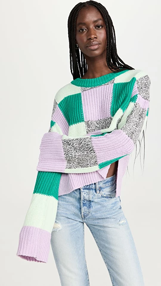 Cool and comfy in equal measure, this For Love & Lemons sweater features a plaid pattern in an ’80s-inspired color scheme and an extra-slouchy fit. We especially like this pullover when it’s paired with light-wash denim.