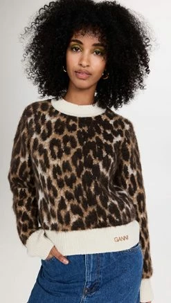 Hot Sale π GANNI Leopard Jacquard O-Neck Sweater Starfish π