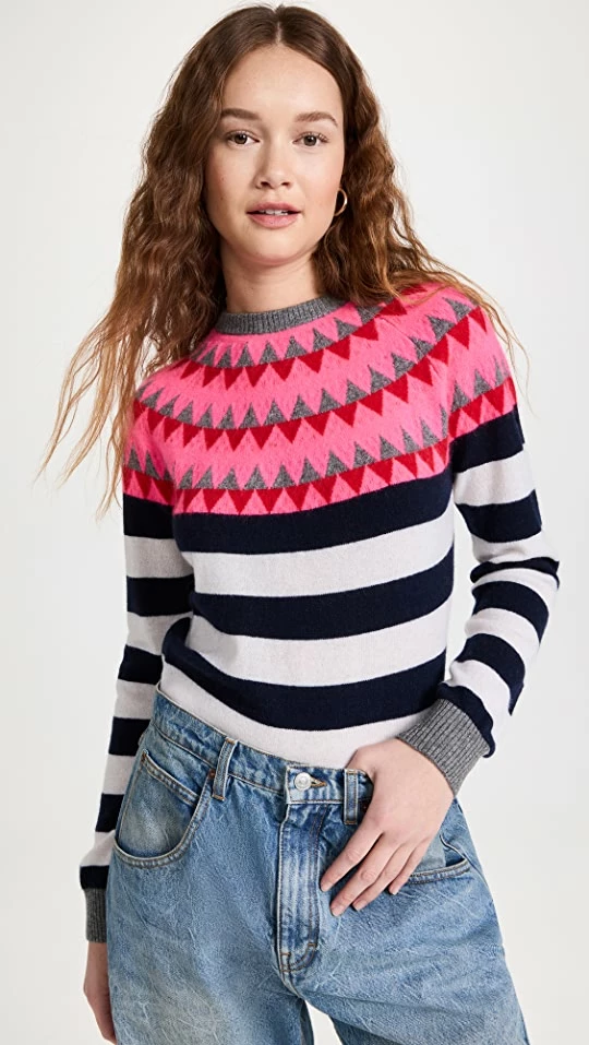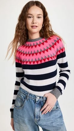 New π Jumper 1234 Val Stripe Cashmere Crew Sweater Mid Grey/Neon Pink β