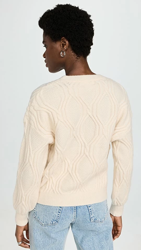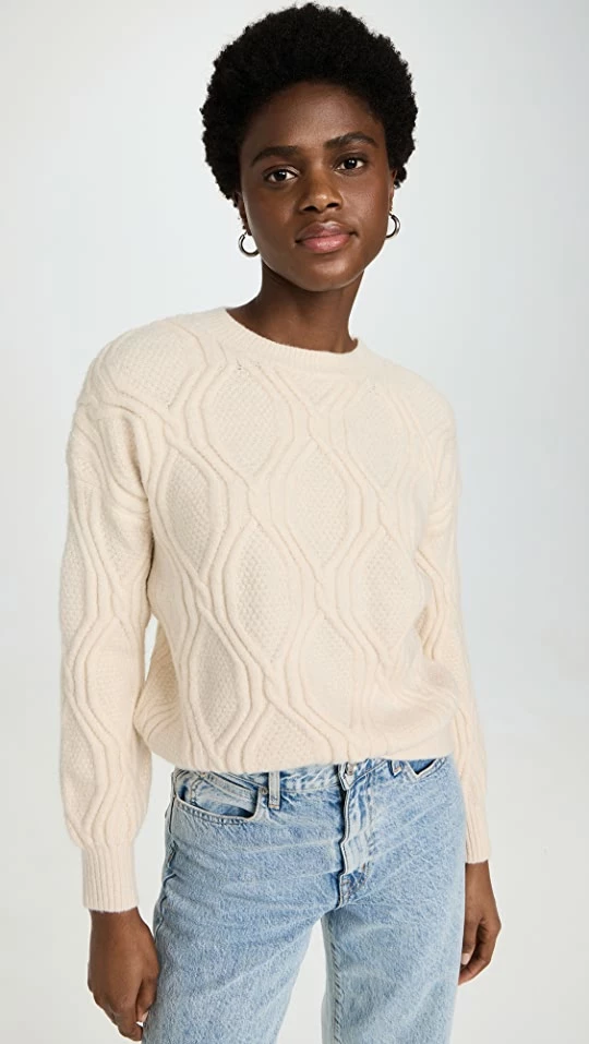 Mixed cable and honeycomb stitches add to the wintry charm of this soft Line & Dot Sincerely sweater. Light-wash jeans will work particularly nicely as an accompaniment for this pullover.