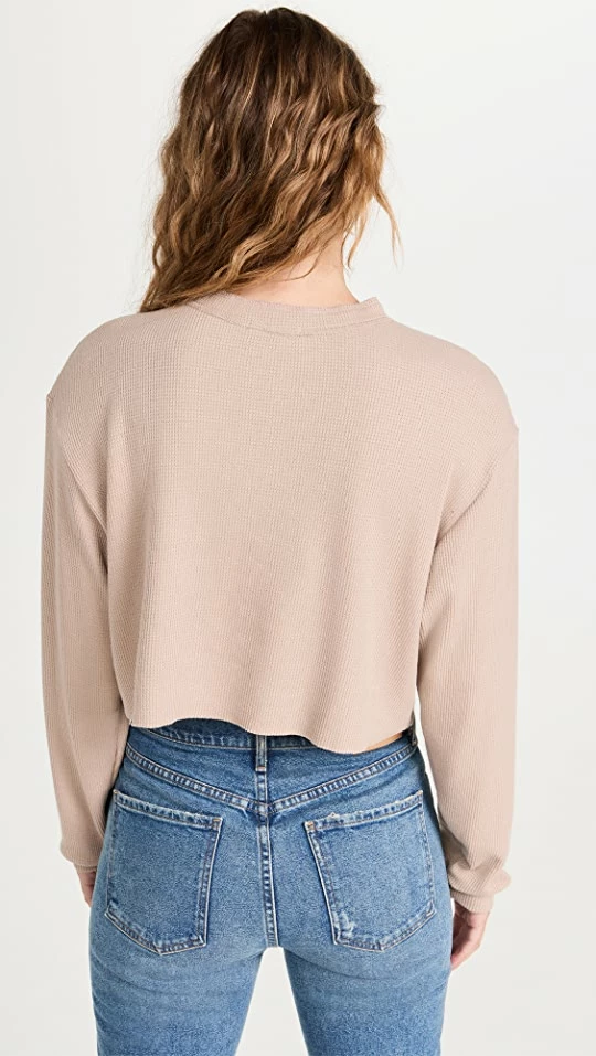 A cool cold-weather essential, this cropped LNA henley top features a slouchy fit, plus a raw hem for a touch of undone style. Jeans, sweats, and leggings will all work equally well with this pullover.