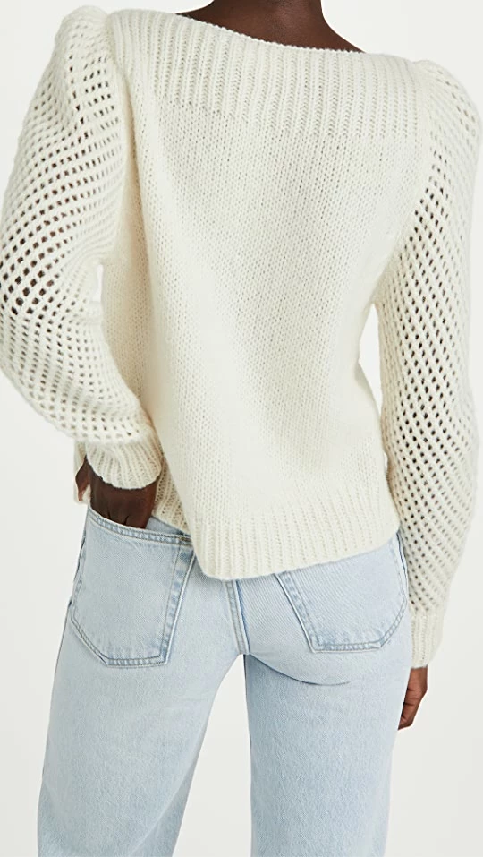 Step up your sweater game with this fresh silhouette from LoveShackFancy, which stands out by including open-knit sleeves and a boat neckline.