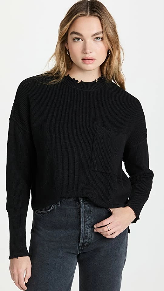A cool and bold pick for your weekend wardrobe, this Pistola Denim sweater features a relaxed fit, distressed edges, and an oversized patch pocket.