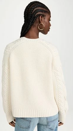 Coupon 🔔 3.1 Phillip Lim Wool Front Overlay Cable Sweater Ant. White 👍