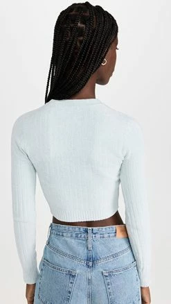 Coupon 🌟 JoosTricot Crop Solid Chenille Sweater Light Blue ❤️