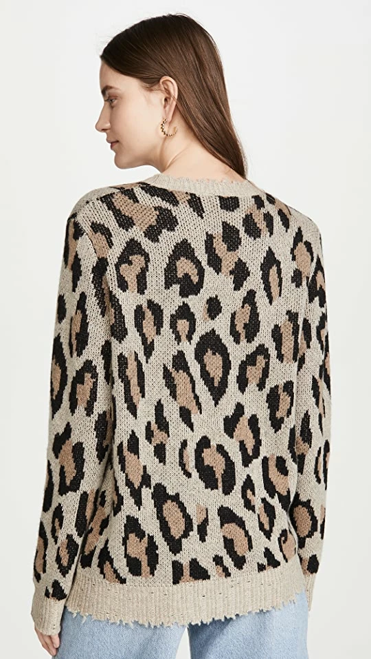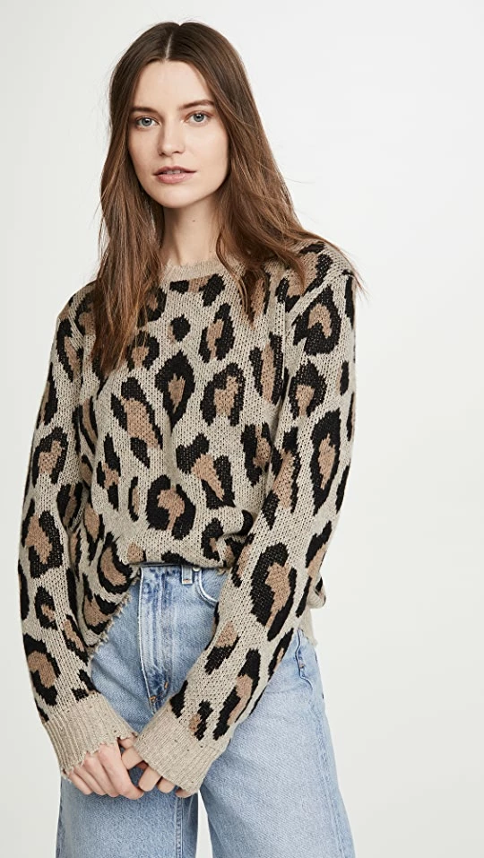 A cool way to wear cashmere. This oversized R13 sweater features a fun leopard print and fraying for a knit that fits right in with the label’s grunge-inspired looks.