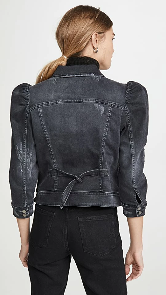 Simultaneously pretty and punky, this one-of-a-kind Retrofete denim jacket juxtaposes edgy distressing with classic princess sleeves. Dark jeans and slip dresses are equally effective go-withs for this layer.