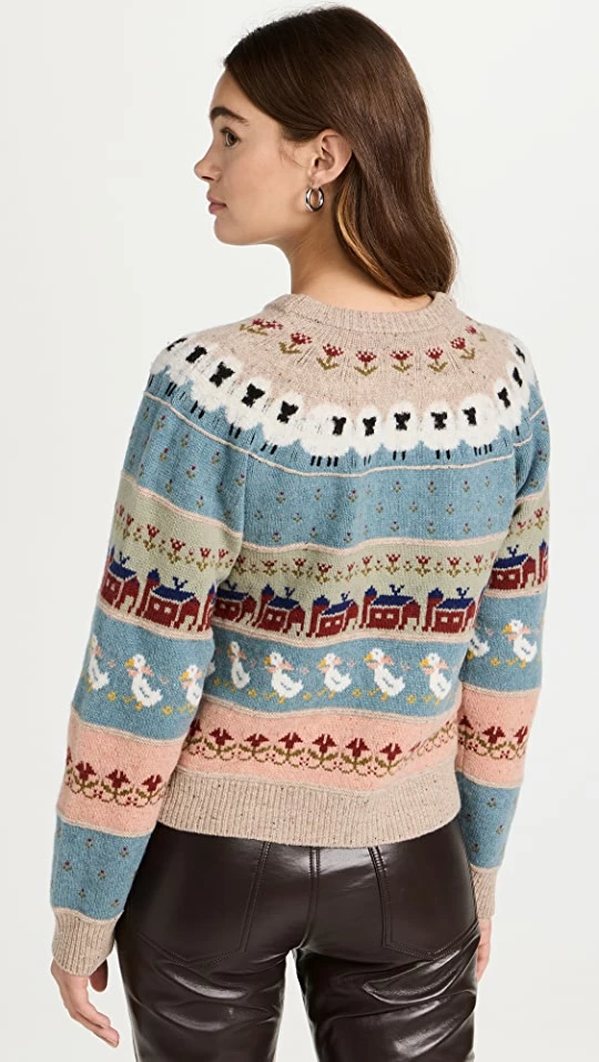 A premium winter option that’s extra charming, this Sea sweater is crafted from pure, super-soft merino wool, and is accented with a farm-themed take on fair isle patterning.