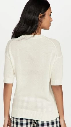 Outlet 🥰 Theory Cashmere Short Sleeve Easy Pull Over Ivory 🤩
