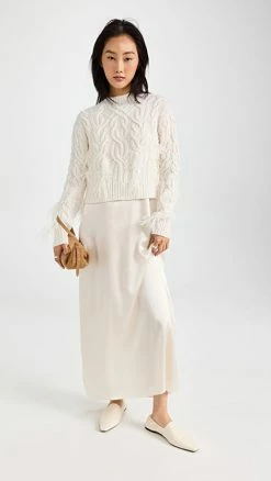 Flash Sale π₯ Vince Feather Embelished Cable Sweater Cream β¨