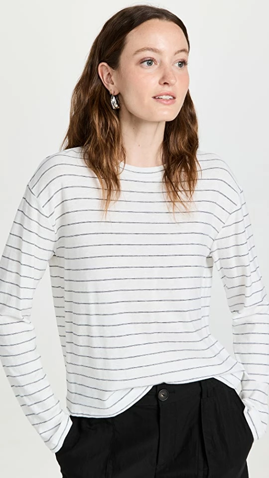 Best reviews of π Vince Striped Long Sleeve Pullover Off White/Coastal π